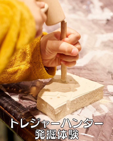 ハンマーとノミを使い、石膏プレートから本物の化石や鉱石を掘り出す体験イベントです。